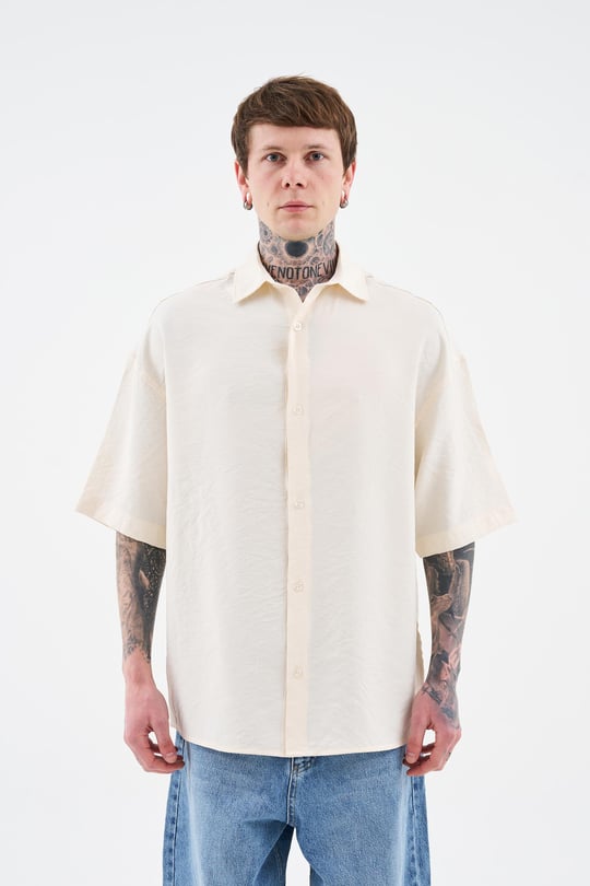 پیراهن لینن بیسیک رنگ سفید شیری مچینیست MACHINIST