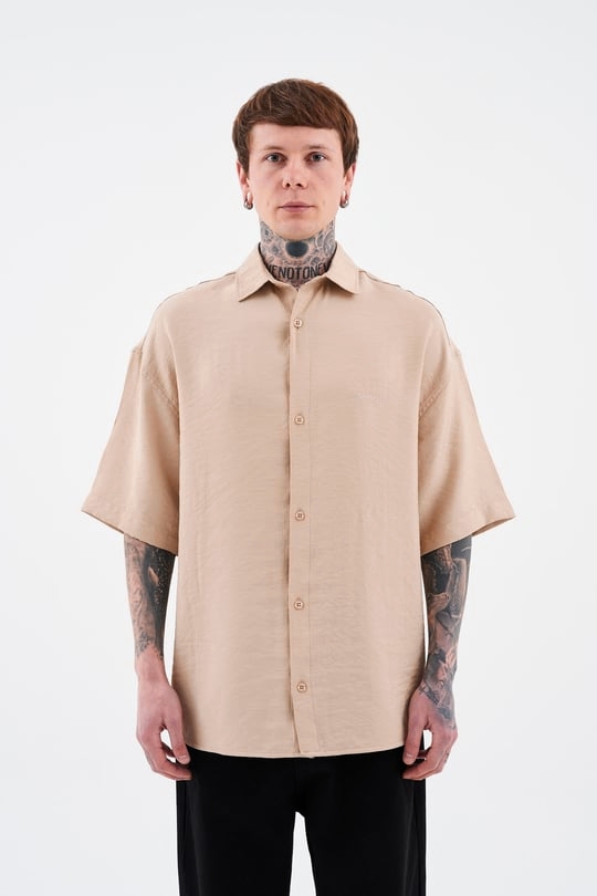 پیراهن لینن بیسیک رنگ کرم تیره مچینیست MACHINIST