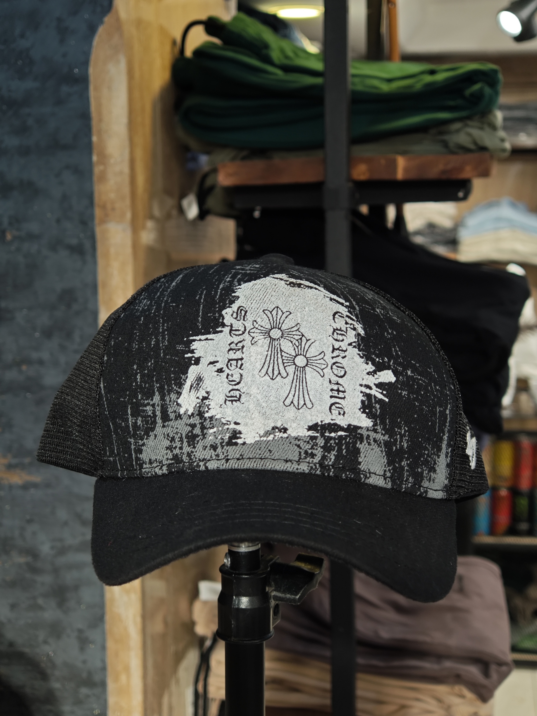 کلاه پشت توری کتان فول چاپ کروم هارتز chrome hearts