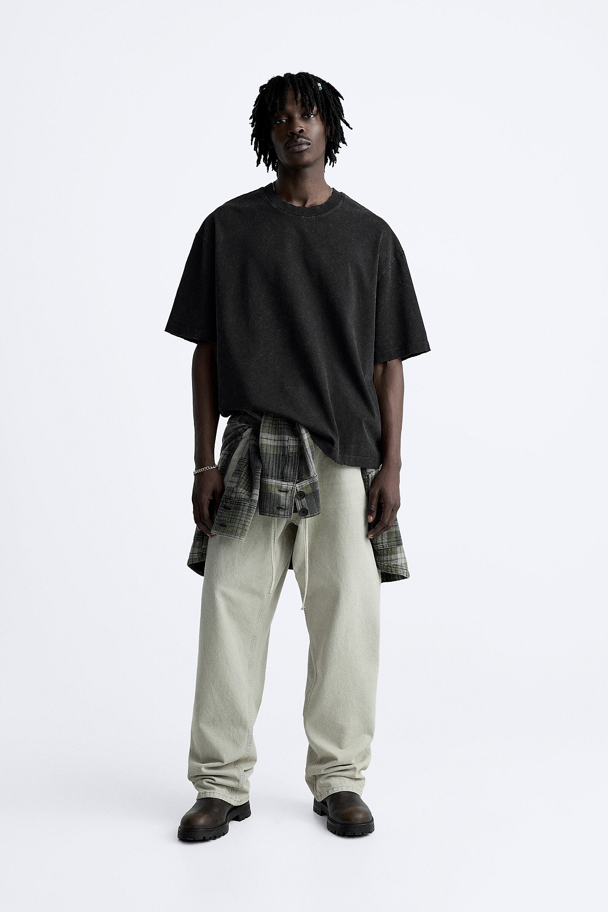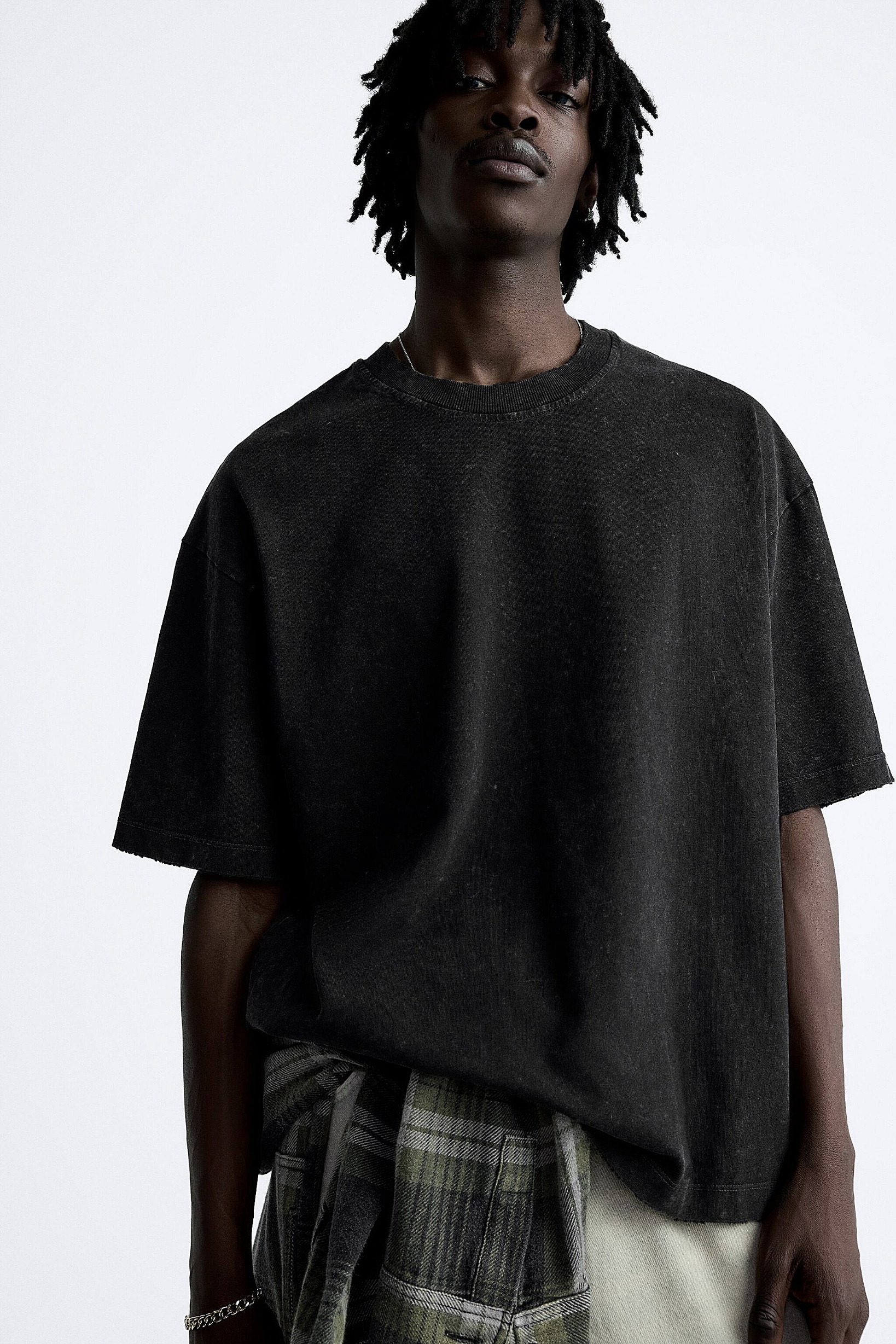 تیشرت بیسیک باکسی زاپ دار رنگ مشکی سنگشور زارا ZARA