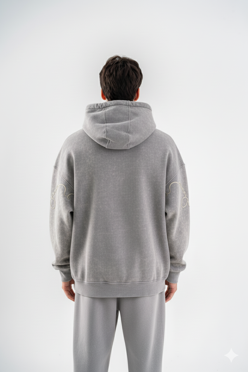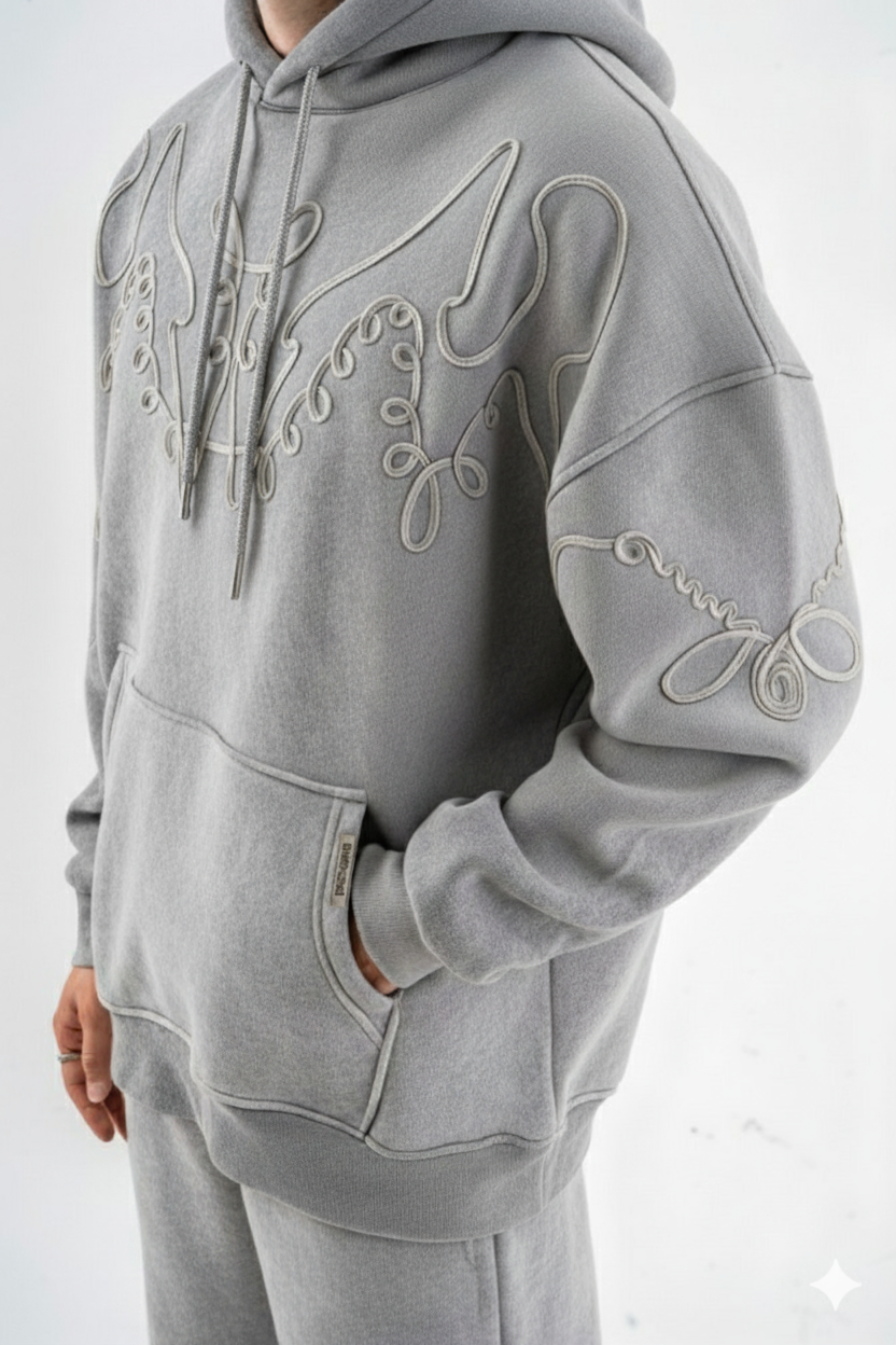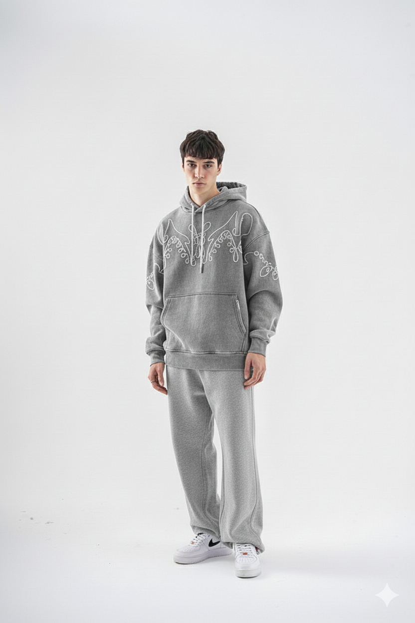 هودی سنگشور گلدوزی طرح پروانه رنگ طوسی روشن برند مکانیک MECHANIC