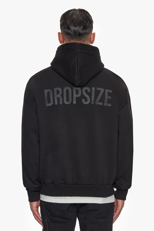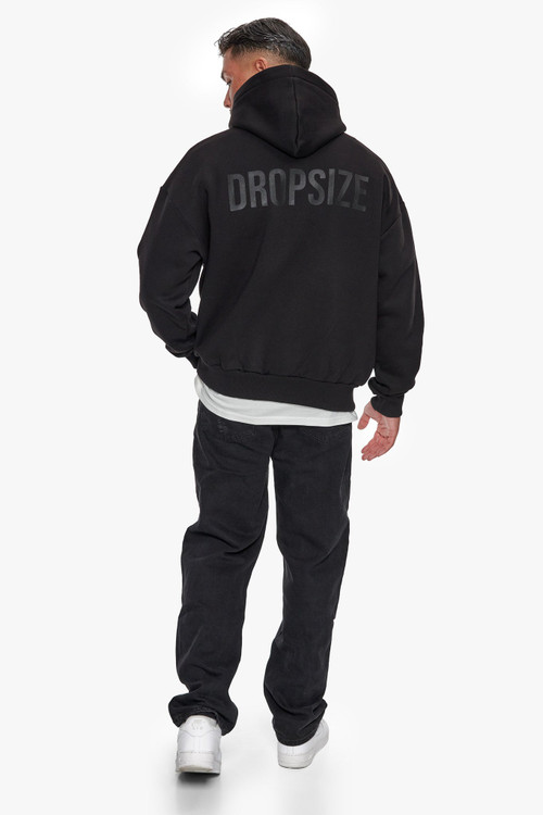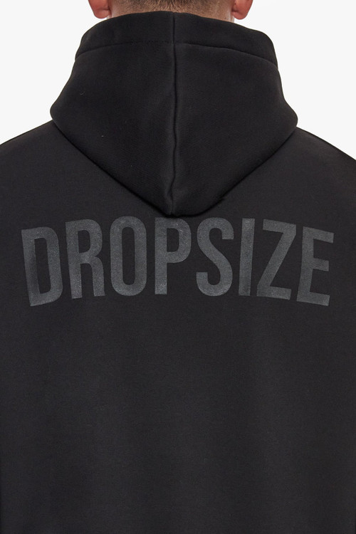 هودی اورسایز گرم بالا چاپ برجسته رنگ مشکی برند دراپسایز DROPSIZE