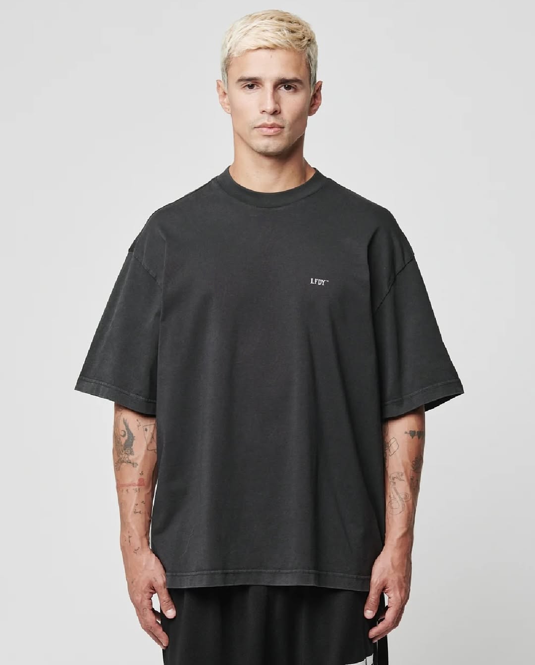 تیشرت گوشی تاشو رنگ Washed Black برند لیوفست LFDY