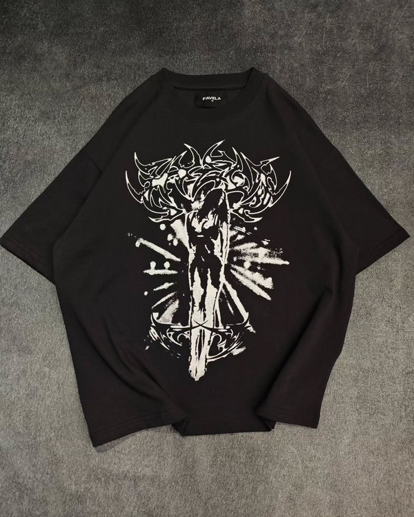 تیشرت جلوچاپ رنگ مشکی سنگشور برند فاولا FAVELA