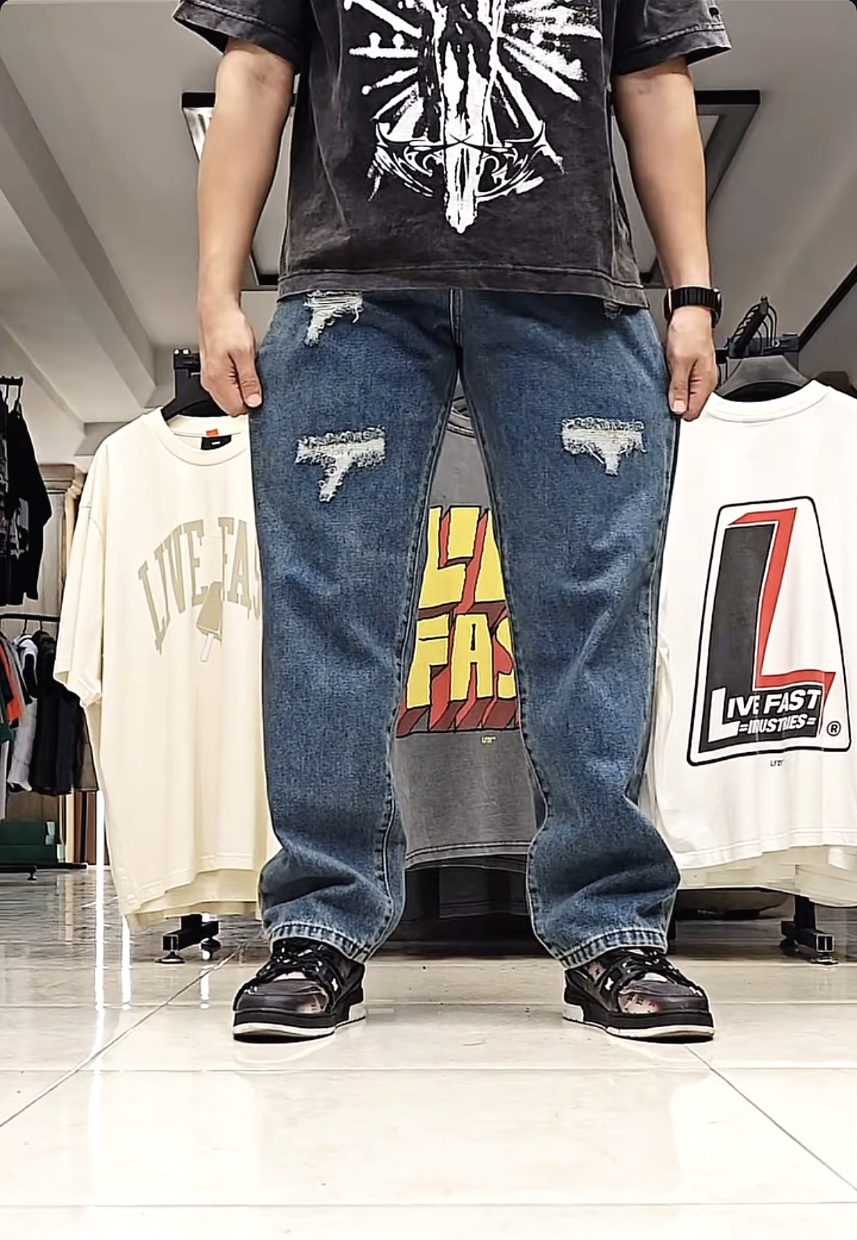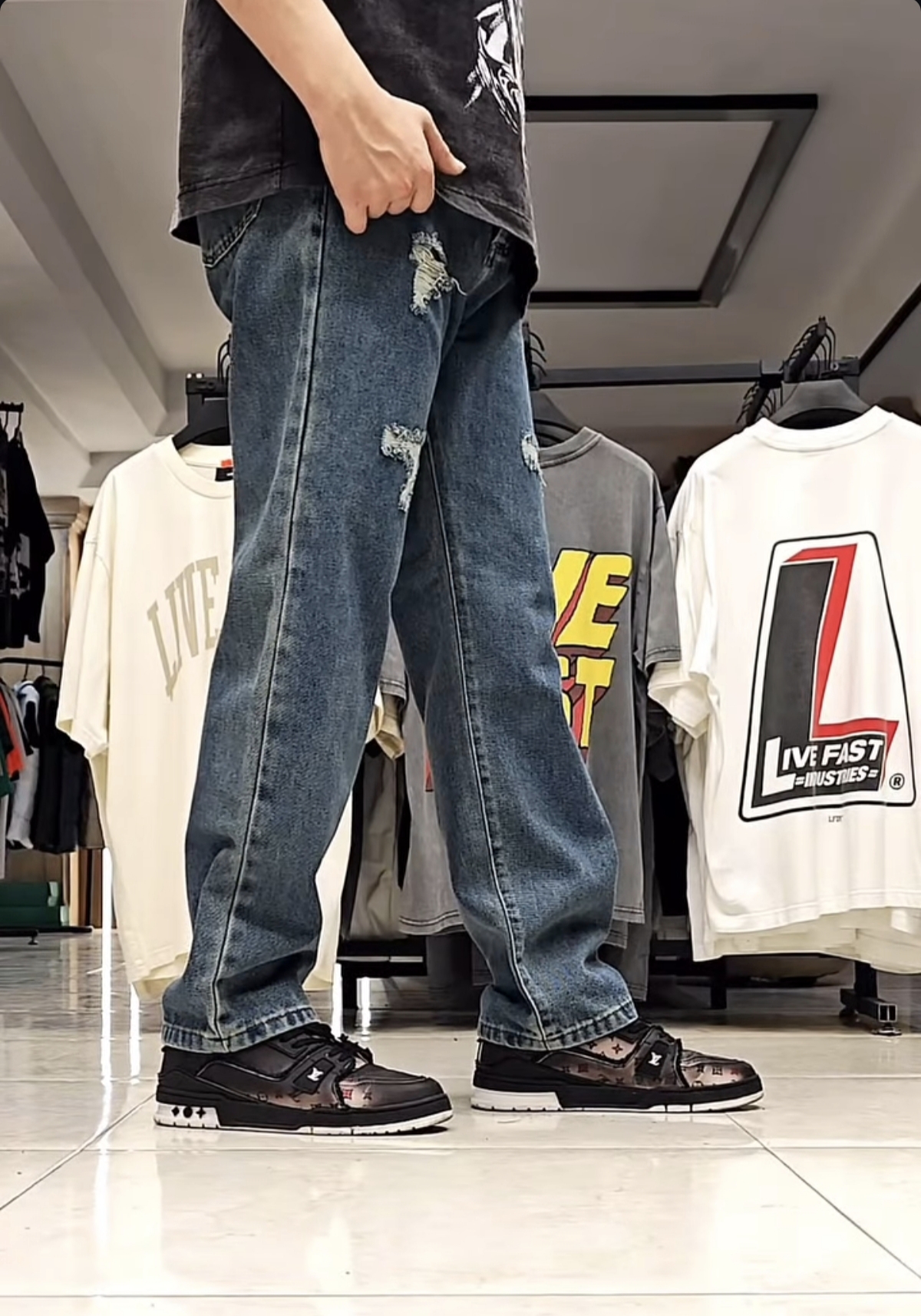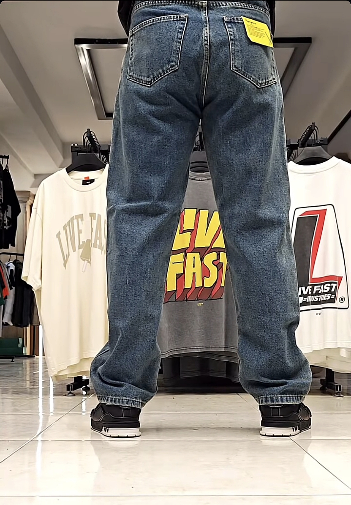 شلوار جین نیم بگ وارداتی آبی تیره به یه شست مِلو کثیف