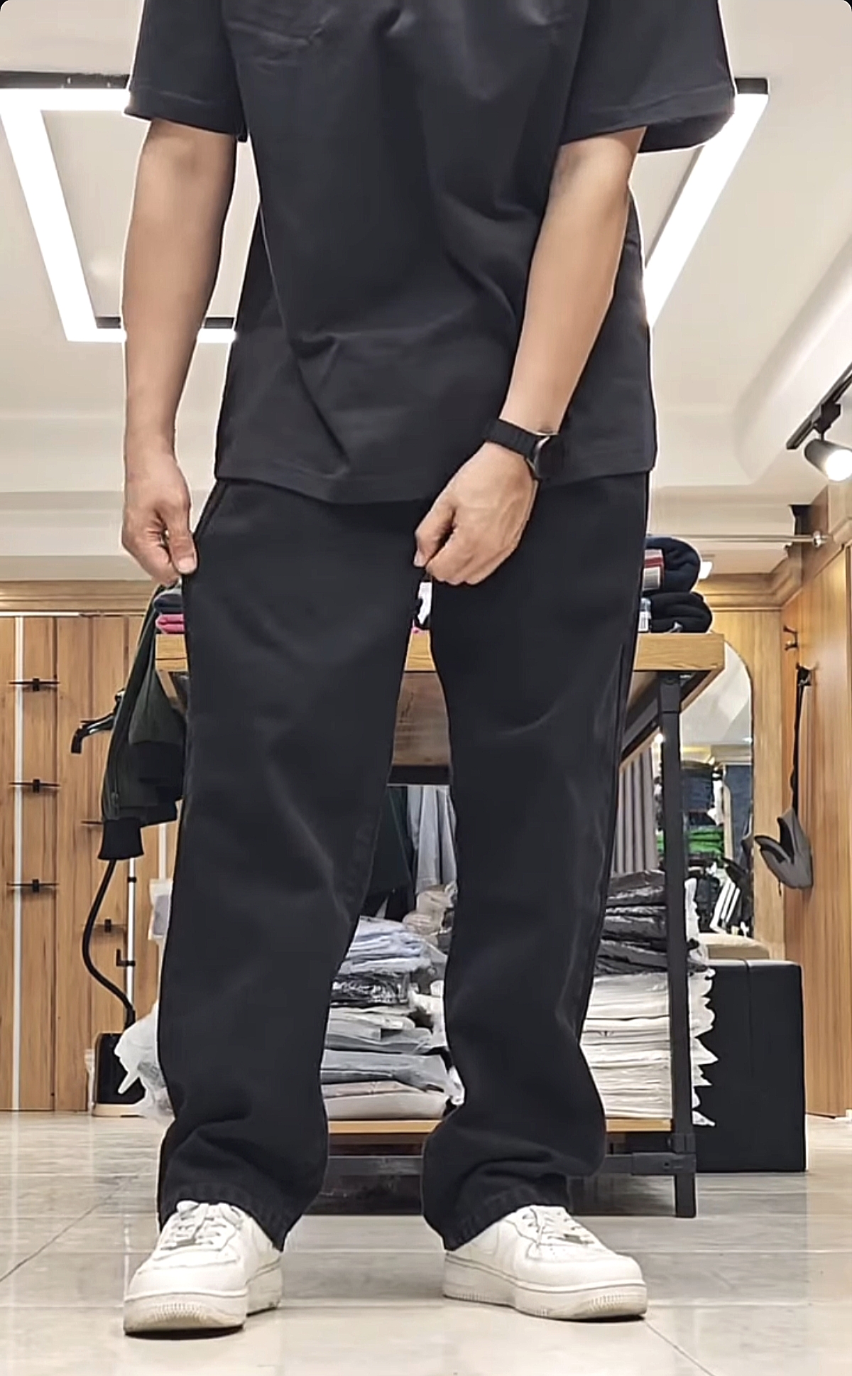 شلوار جین وارداتی نیم بگ مشکی زغالی